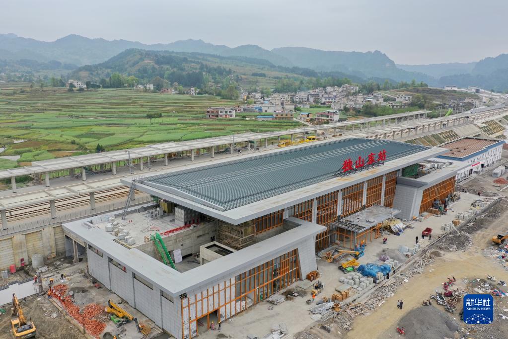 4月9日,獨(dú)山東站在緊張施工當(dāng)中(無人機(jī)照片)。