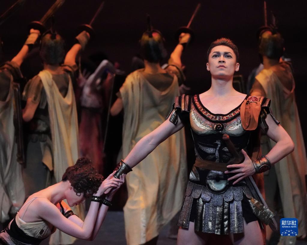 4月9日,演員在芭蕾舞劇《斯巴達克》中進行表演。