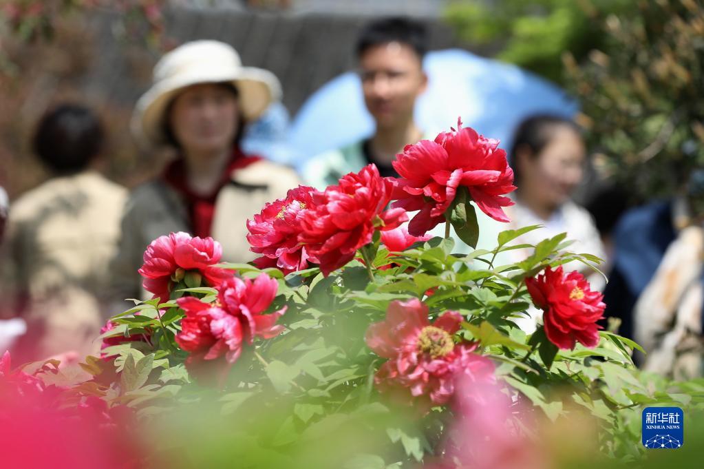 4月9日,游客在浙江省嘉興市南湖風景區觀賞牡丹。