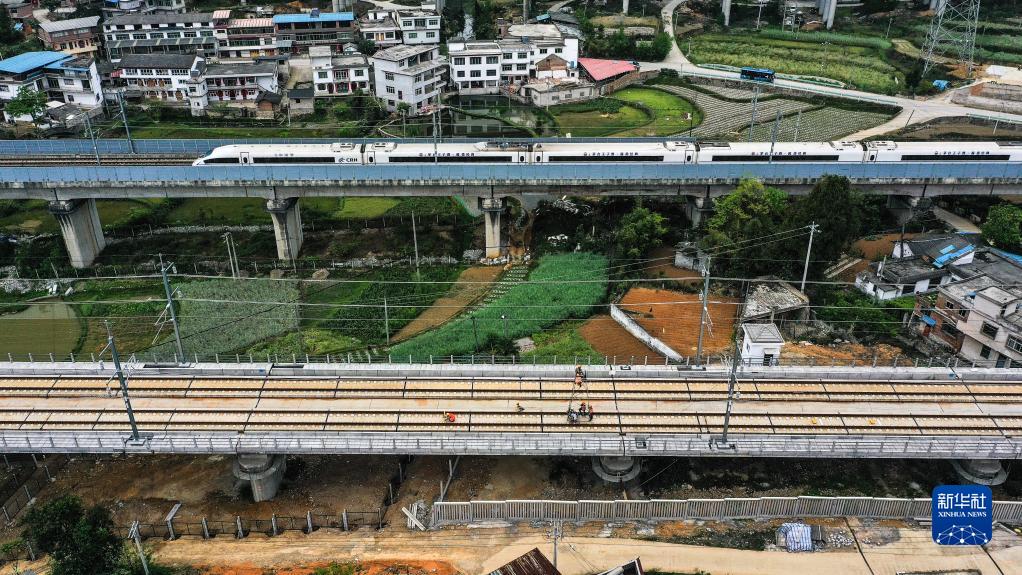 目前,由中鐵三局等單位建設的貴(陽)南(寧)高鐵建設進入沖刺階段,工人們有序開展局部檢測和施工,為年內通車奠定基礎。