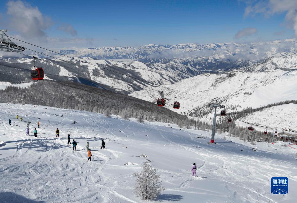 游客在新疆富蘊縣可可托海國際滑雪度假區(qū)滑雪游玩(4月9日攝)。