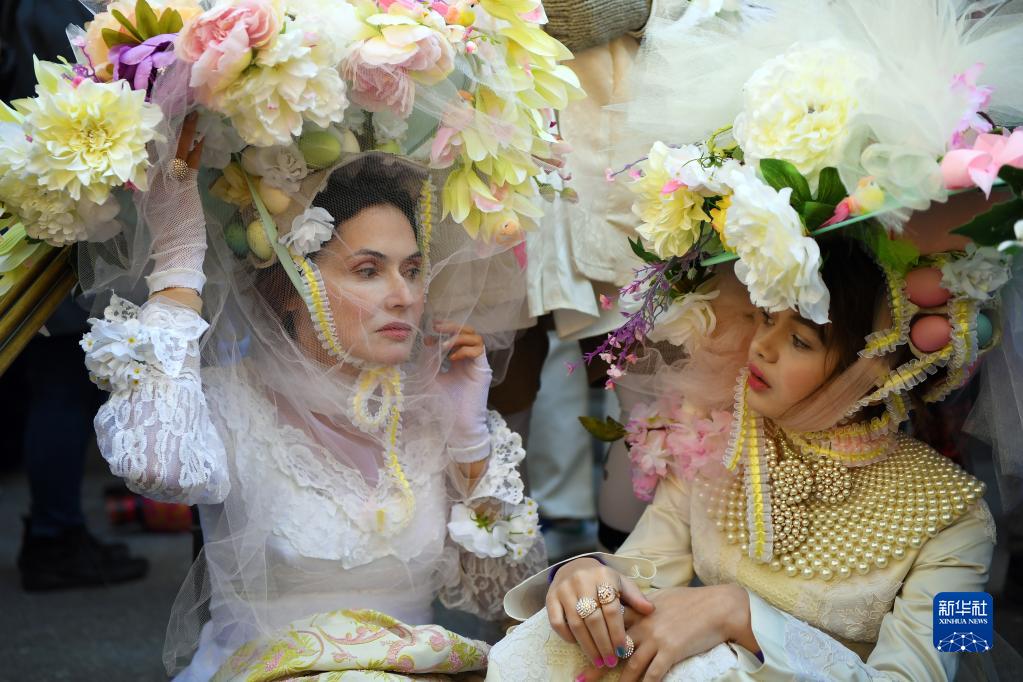 當日是西方傳統節日復活節,人們頭戴精心制作的花帽,在紐約第五大道參加一年一度的復活節游行。