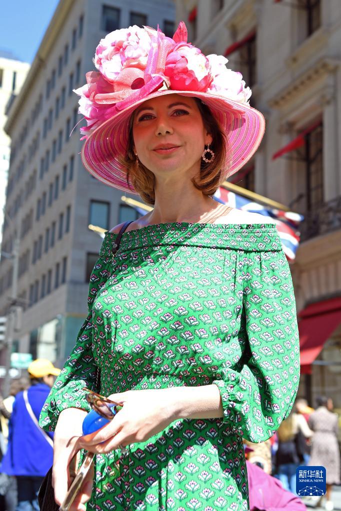 4月9日,在美國紐約,一名女子參加復活節花帽游行。