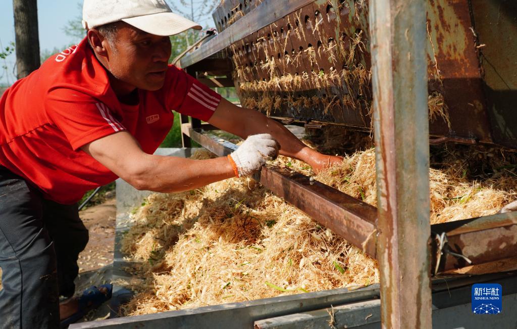 4月10日,在山東省單縣高老家鄉(xiāng),麥冬種植戶在清洗收獲的麥冬。