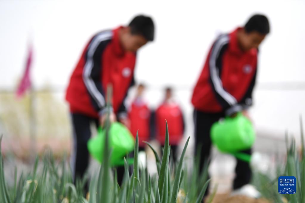 4月10日,學生在河北省張家口市懷來縣桑園中學勞動實踐基地里體驗農耕。
