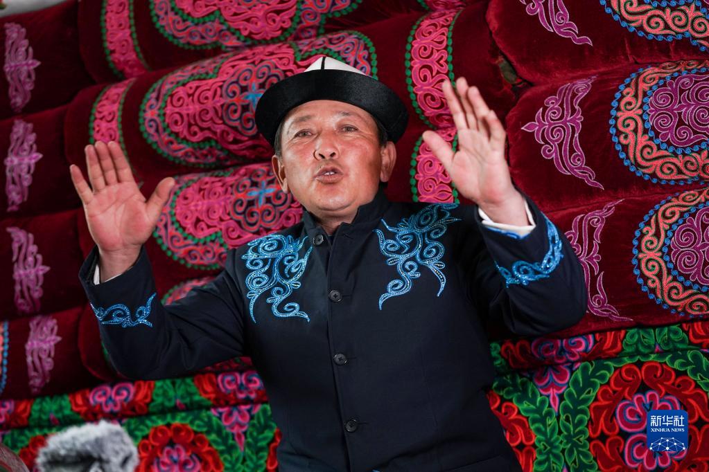 作為自治州級《瑪納斯》傳承人的阿不都別克從7歲起開始學唱《瑪納斯》,隨著史詩中情節的變化和英雄人物喜怒哀樂的情感跌宕,阿不都別克的面部表情、手勢以及曲調變化多端,極富感染力。