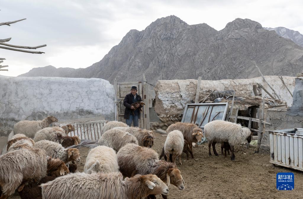 4月10日清晨,在阿合奇村,阿不都別克把小羊趕到一起,讓小羊吃奶。