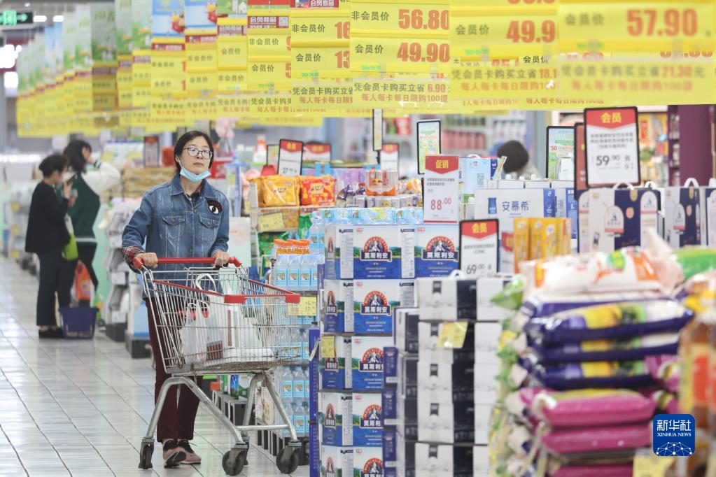 4月11日,消費(fèi)者在南京一家超市選購(gòu)商品。