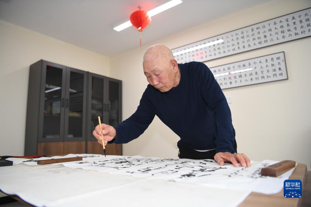 老年人在河北雄安新區容西第一養老驛站練習書法(4月10日攝)。