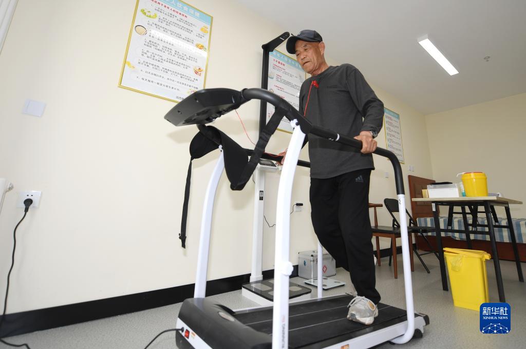 老年人在河北雄安新區(qū)容西第一養(yǎng)老驛站進(jìn)行鍛煉(4月10日攝)。