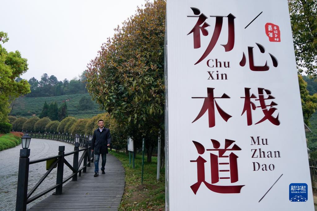 4月6日,彭銳行走在樹山村的木棧道上。 新華社記者 李博 攝