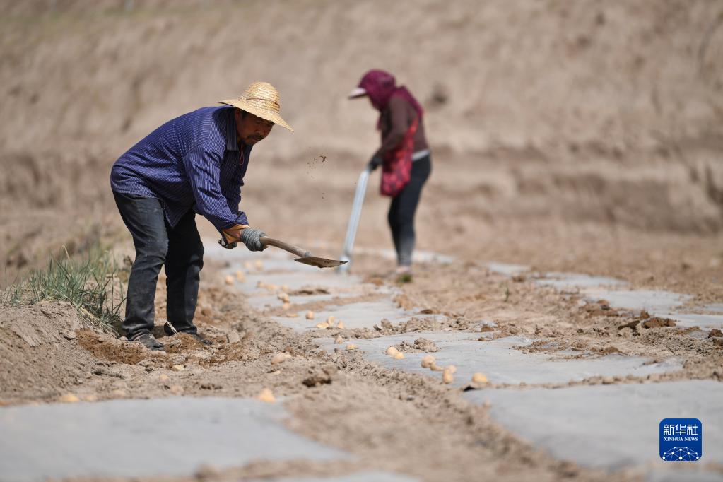 4月11日,在靜寧縣紅寺鎮胡溝村,村民在高標準農田里勞作。