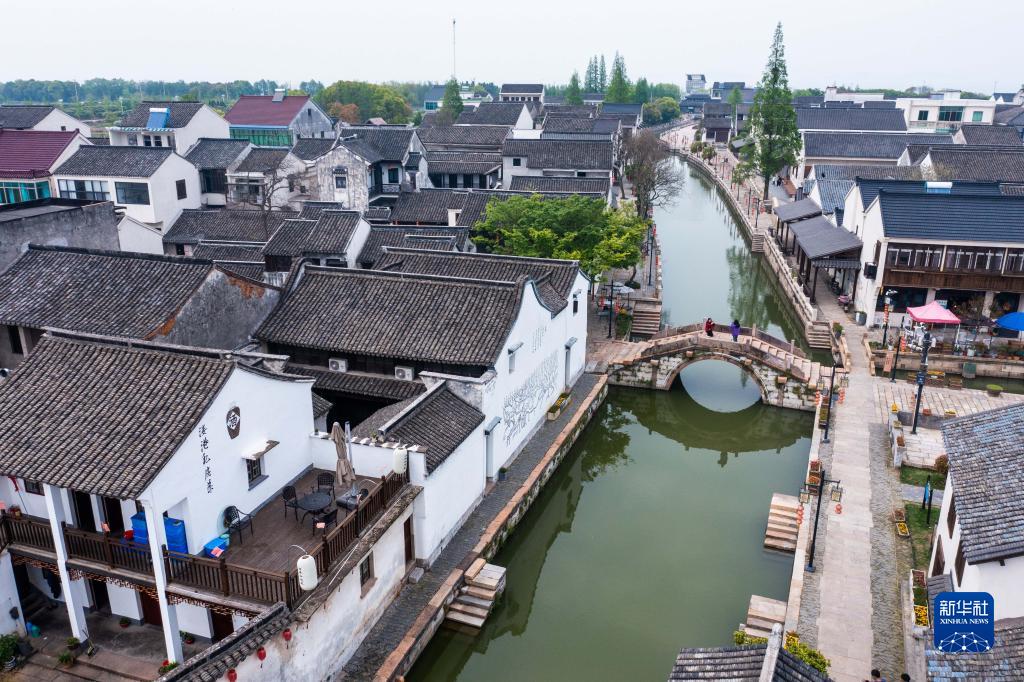 4月11日拍攝的織里鎮義皋村古村落景區(無人機照片)。