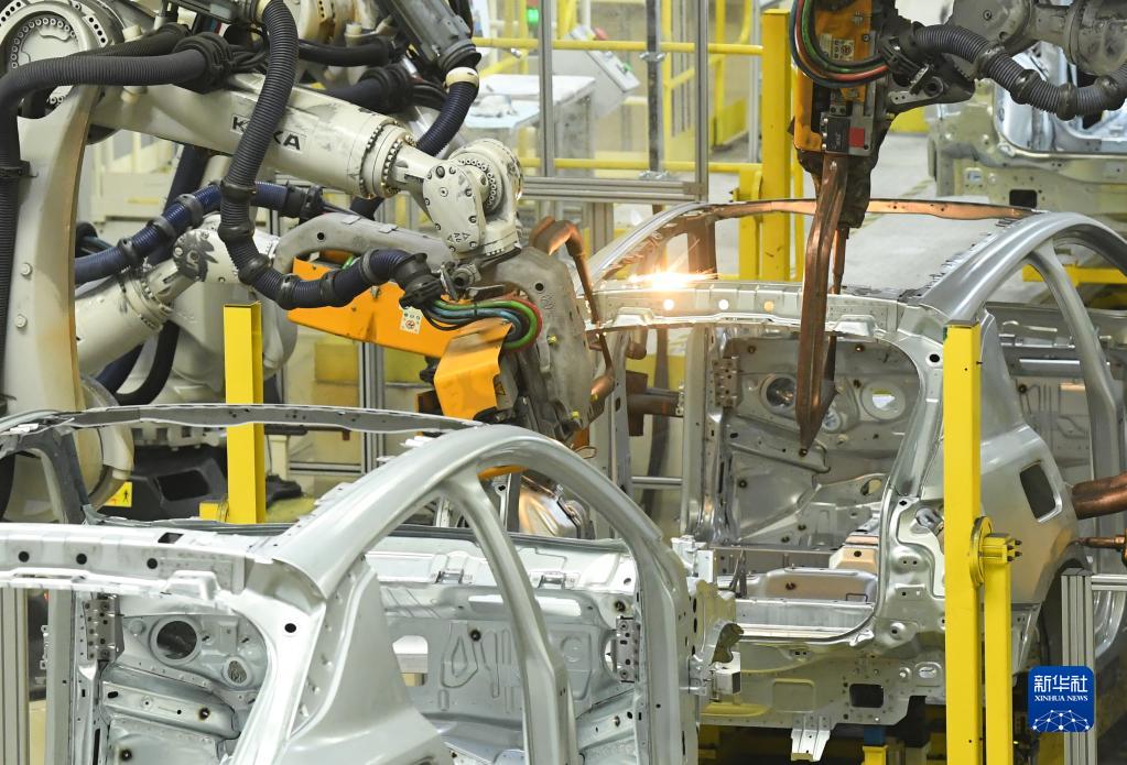4月11日,智能機(jī)器人在領(lǐng)克汽車寧波余姚工廠焊裝車間工作。