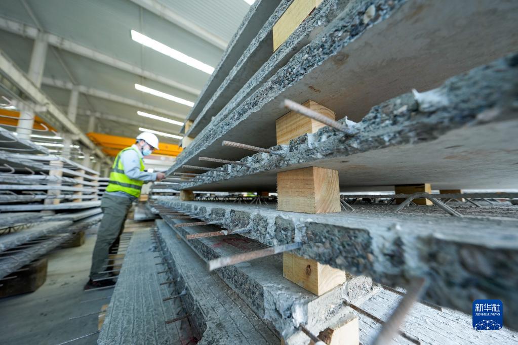 4月11日,河北省玉田縣一家裝配式建筑制造企業(yè)的工人在查驗(yàn)產(chǎn)品質(zhì)量。