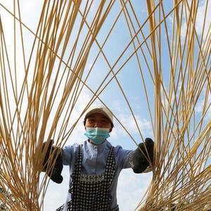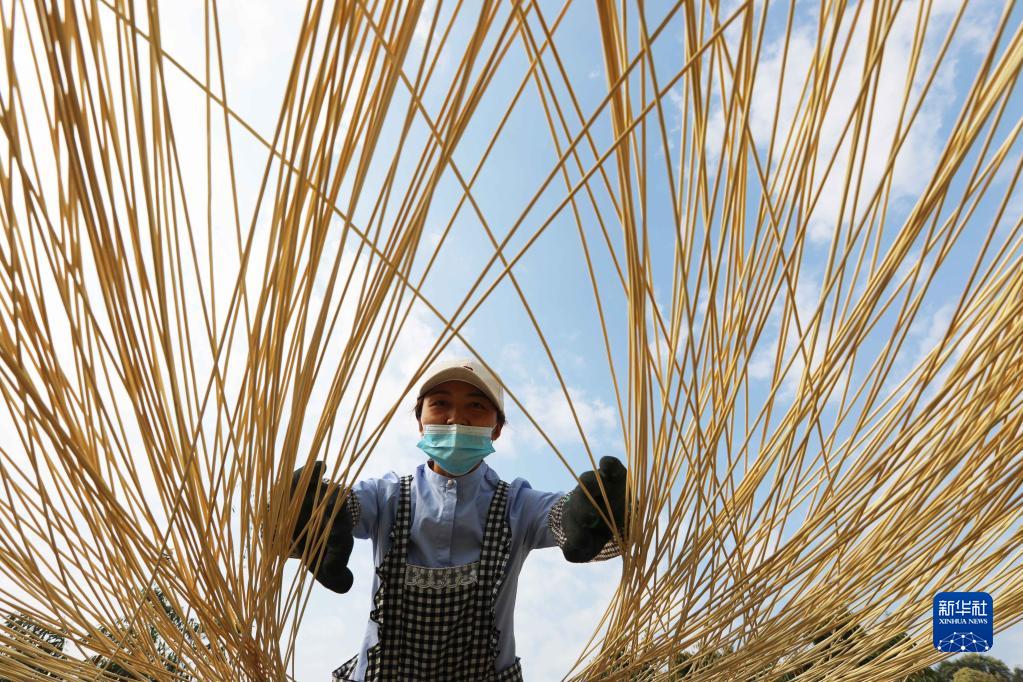 4月11日,在赤水市復(fù)興鎮(zhèn)太和村,工人分選竹絲。