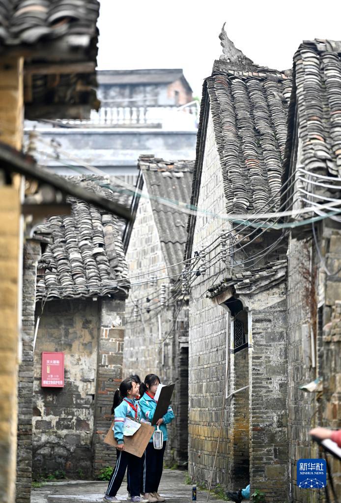 4月10日,學(xué)生在柳城縣古砦仫佬族鄉(xiāng)大戶村灘頭屯內(nèi)寫生。