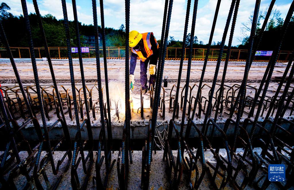 在梁開(kāi)高速梁平段施工現(xiàn)場(chǎng),工人在進(jìn)行焊接作業(yè)(2023年3月20日攝)。