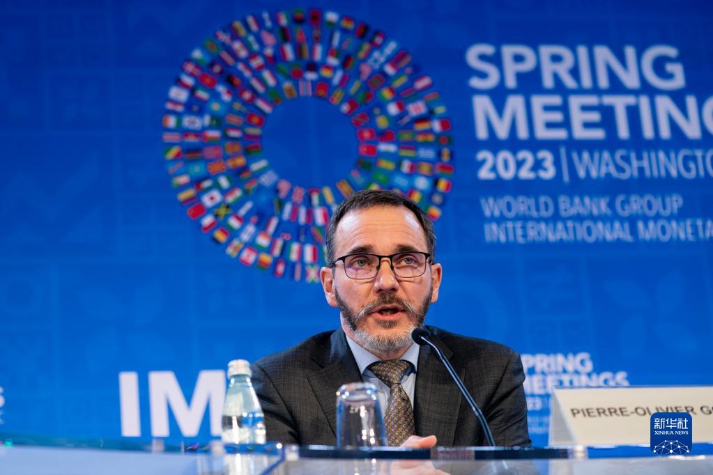 4月11日,在美國(guó)華盛頓,國(guó)際貨幣基金組織(IMF)經(jīng)濟(jì)顧問兼研究部主任皮埃爾-奧利維耶·古蘭沙出席新聞發(fā)布會(huì)。