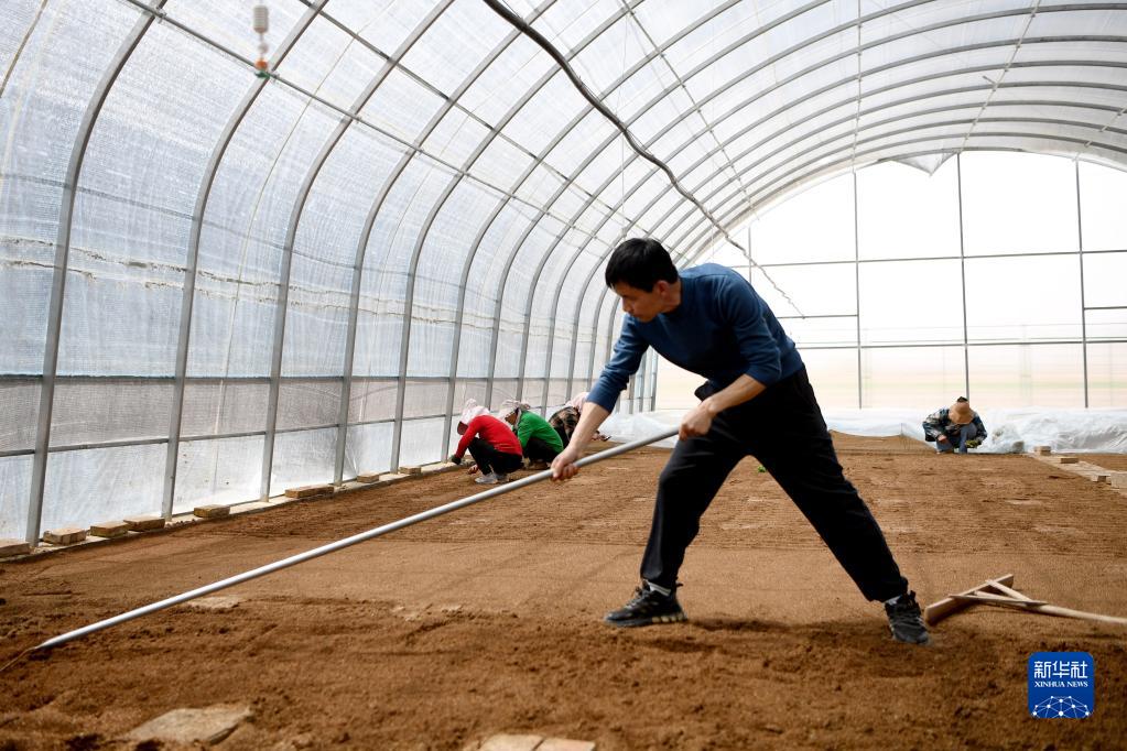4月11日,農民在靜寧縣紅寺鎮二河村馬鈴薯原原種擴繁基地的日光溫室里勞作。