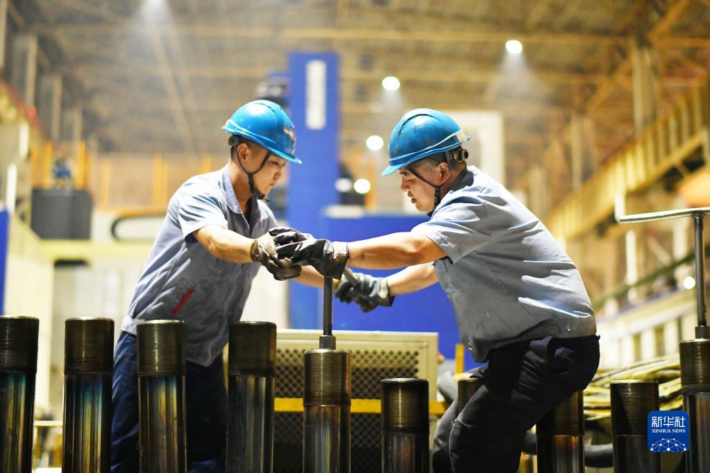 4月10日,工人在哈電集團哈爾濱汽輪機廠有限責任公司車間內生產作業。