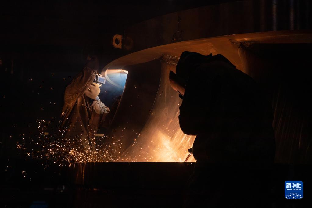 4月11日,工人在哈電集團哈爾濱電機廠有限責任公司生產車間內進行作業。