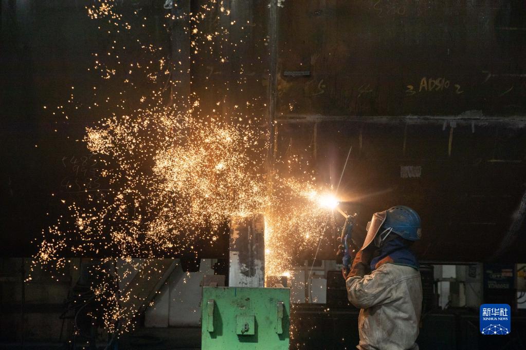 4月12日,工人在哈電集團(tuán)哈爾濱鍋爐廠有限責(zé)任公司生產(chǎn)車間內(nèi)作業(yè)。
