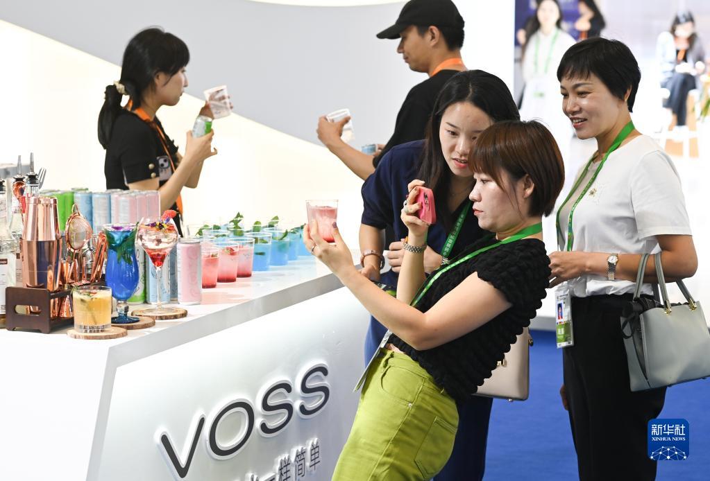 4月11日,觀眾在消博會(huì)上用手機(jī)拍攝飲品。