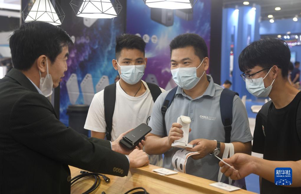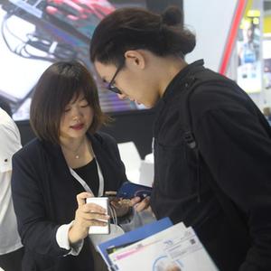 4月12日,參觀者在展會上參觀選購電子產(chǎn)品。