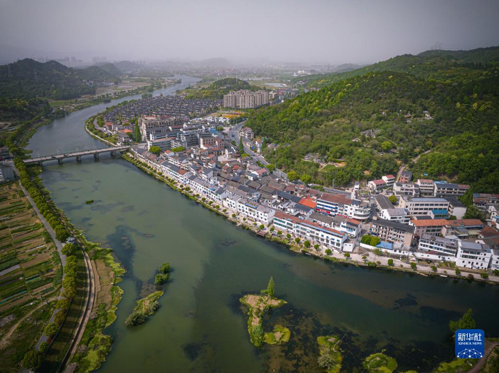 這是4月12日拍攝的諸暨市暨南街道街亭村開化江兩岸景色(無人機(jī)照片)。
