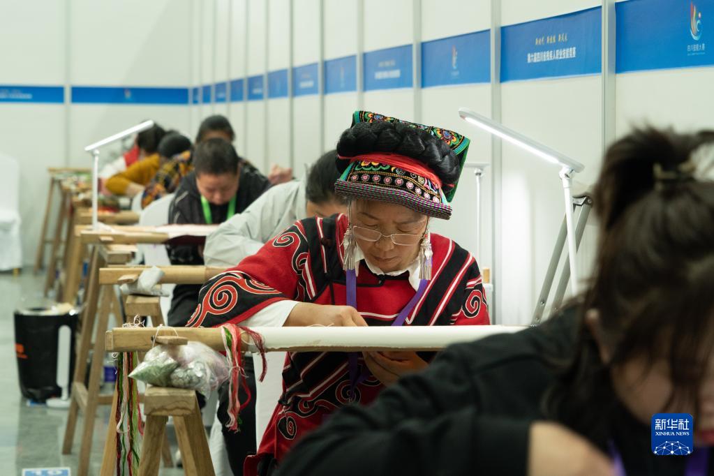 4月12日,在四川省綿陽市公共實訓基地,參加刺繡項目的選手正在比賽中。