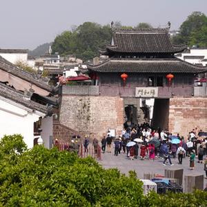 4月12日,游客游覽安徽省黃山市歙縣的徽州古城景區。