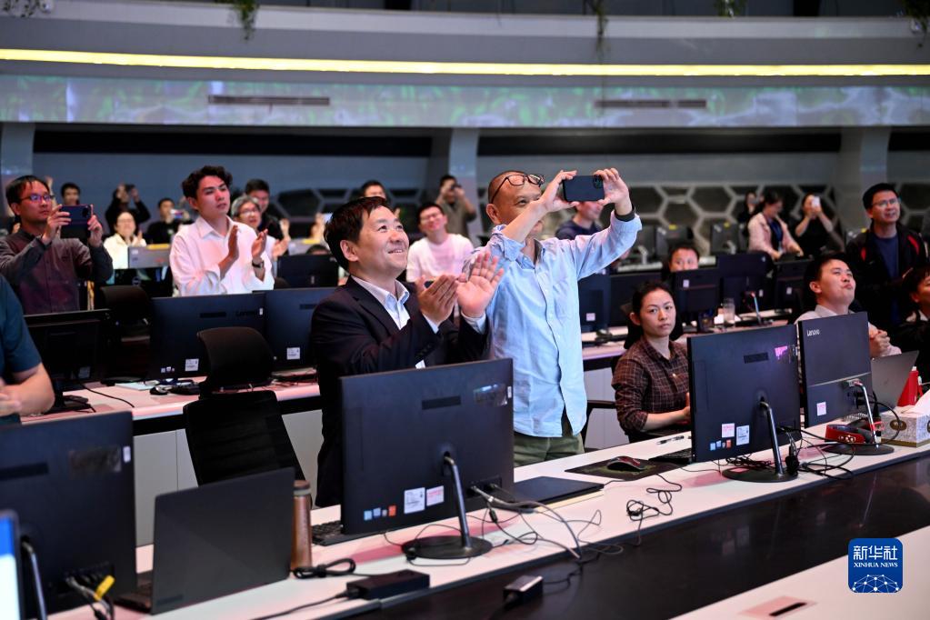 4月12日,在全超導托卡馬克核聚變實驗裝置(EAST)控制大廳,科研人員在實驗成功后慶祝。
