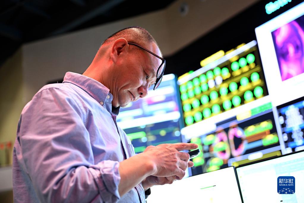 4月12日,在全超導托卡馬克核聚變實驗裝置(EAST)控制大廳,EAST物理實驗總負責人龔先祖在實驗成功后向好友發(fā)消息慶祝。
