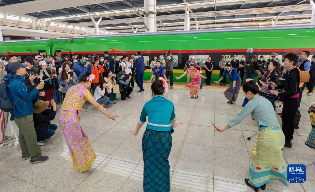當日,中老鐵路開行國際旅客列車,昆明至萬象間可實現乘火車當日通達。