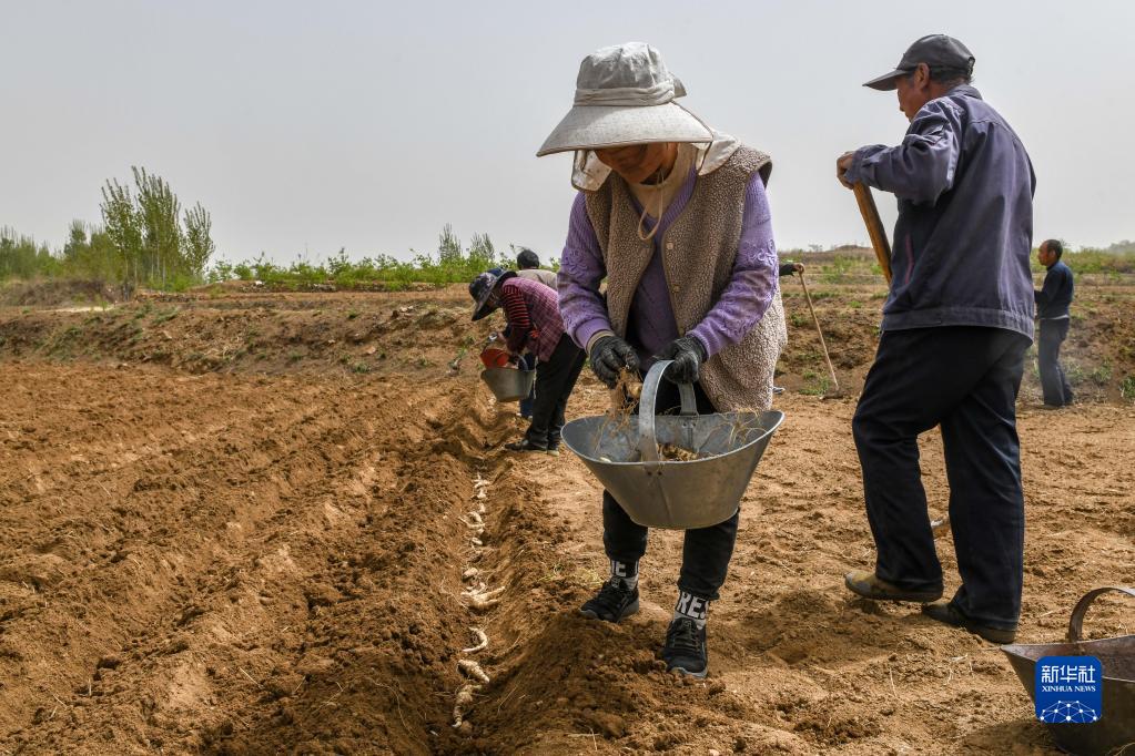 4月12日,泰安市岱岳區耿莊村農業合作社成員在播種黃精。