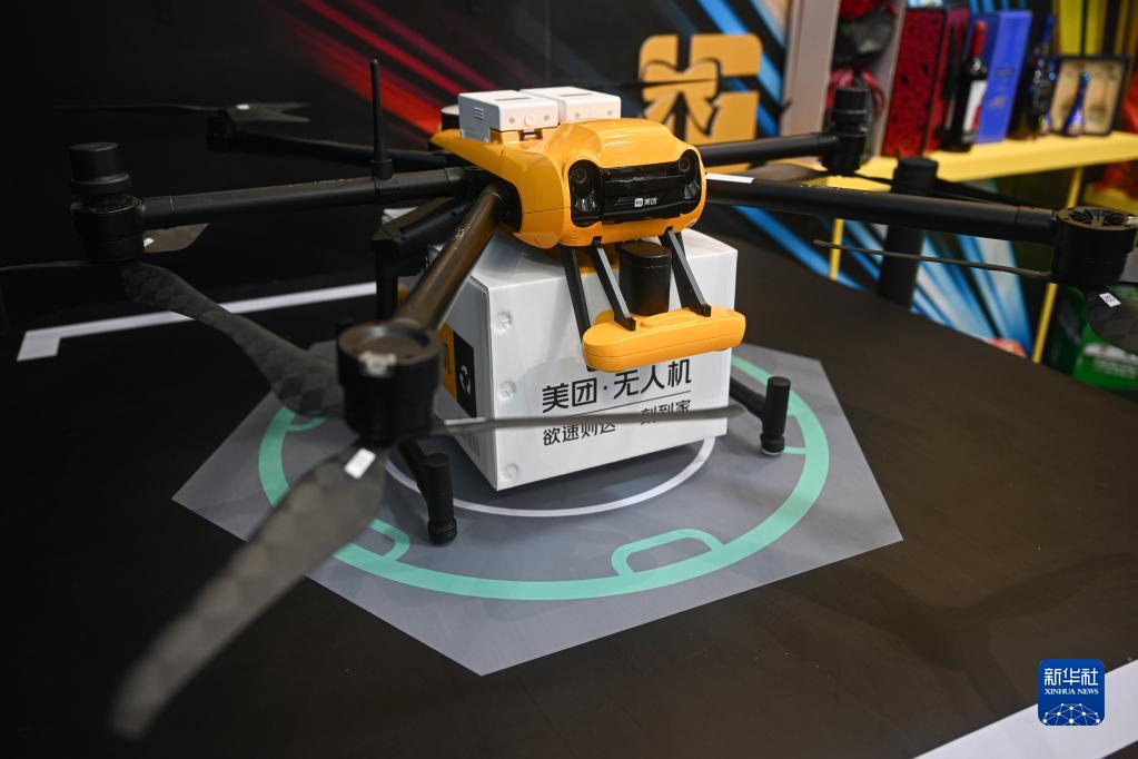 這是4月13日在美團展臺拍攝的美團無人機。