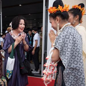 4月13日,在中老鐵路老撾磨丁站,工作人員歡迎乘坐D887次國際旅客列車的旅客抵達磨丁。