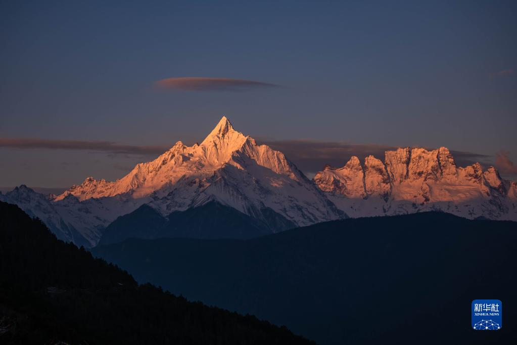 這是日出時分拍攝的云南省迪慶州梅里雪山一景(2023年3月10日攝)。