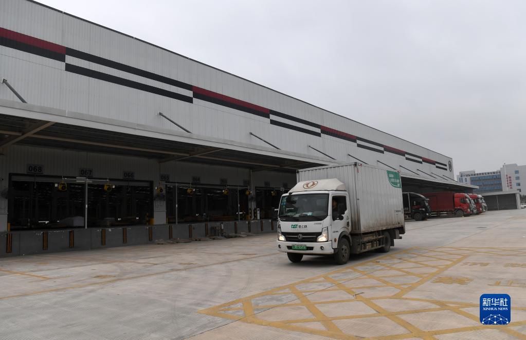 4月13日,車輛從南寧國際鐵路港順豐分撥中心外駛過。