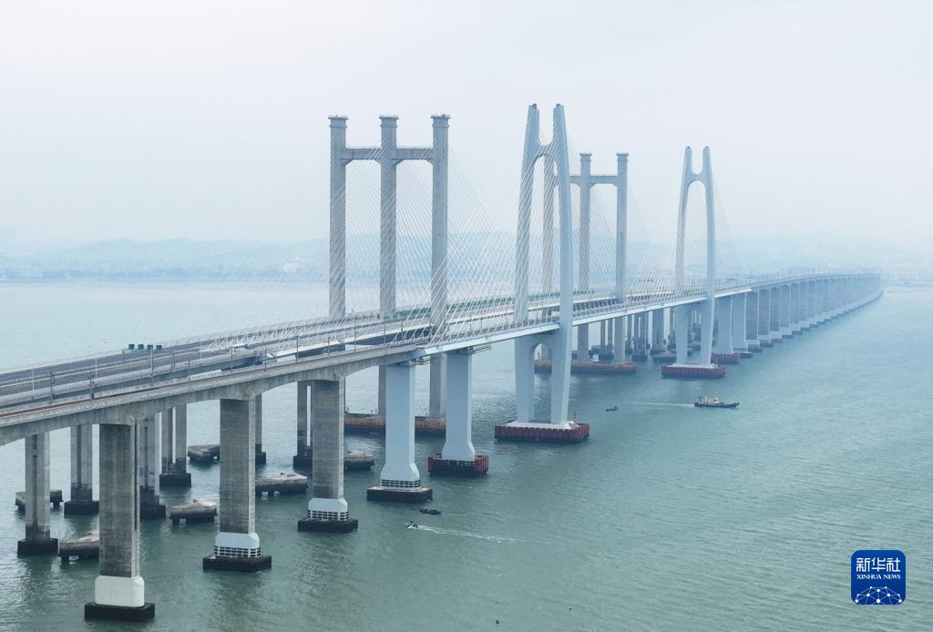 新建福廈鐵路泉州灣跨海大橋(4月12日攝,無(wú)人機(jī)照片)。