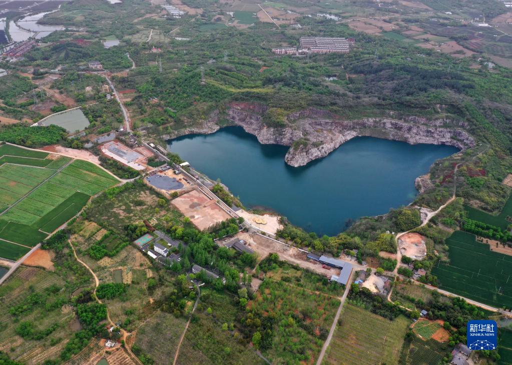 “深藍計劃”所在的廢棄礦坑(4月13日攝,無人機照片)。這個礦坑深達108米,原本廢棄多年,如今已是網紅打卡地。