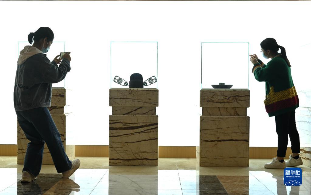 4月13日,市民在河北省石家莊絲弦藝術陳列館參觀。