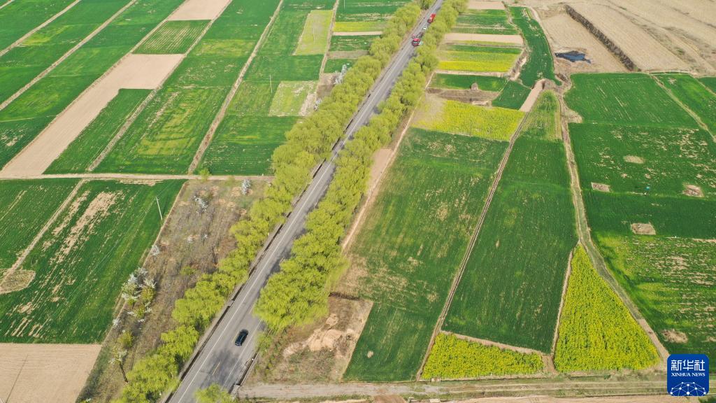 這是4月13日拍攝的甘肅省平?jīng)鍪谐缧趴h錦屏鎮(zhèn)境內(nèi)的田野(無人機(jī)照片)。