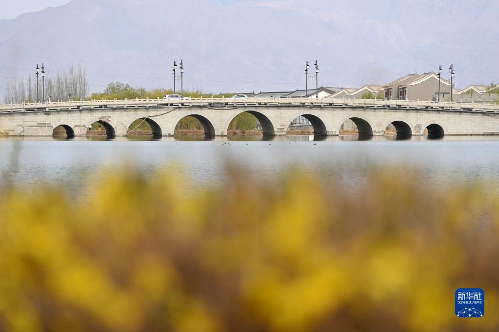 這是4月13日拍攝的張掖市蘆水灣生態(tài)景區(qū)內(nèi)春日景色。