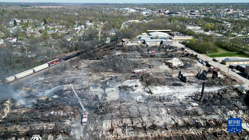這是4月13日拍攝的美國印第安納州發生火災的回收廠(無人機拍攝)。
