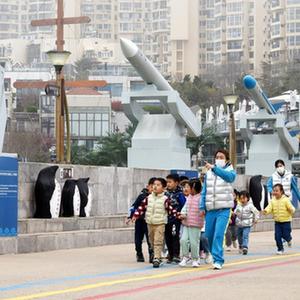 4月14日,孩子們在青島海洋軍事博物館參加研學活動。