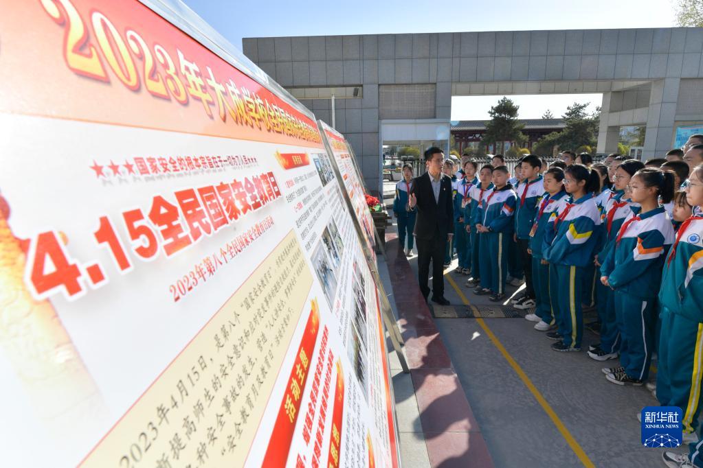 4月14日,在張掖市甘州區(qū)大成學(xué)校,老師給學(xué)生講解國(guó)家安全相關(guān)知識(shí)。