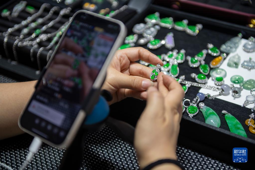云南省德宏傣族景頗族自治州瑞麗市地處中緬邊境,是我國重要的珠寶玉石集散地之一。近日正值潑水節,到德宏州旅游的游客大幅增加,瑞麗市的珠寶玉石市場、直播基地一派繁忙景象,旅游熱帶動珠寶銷售熱。