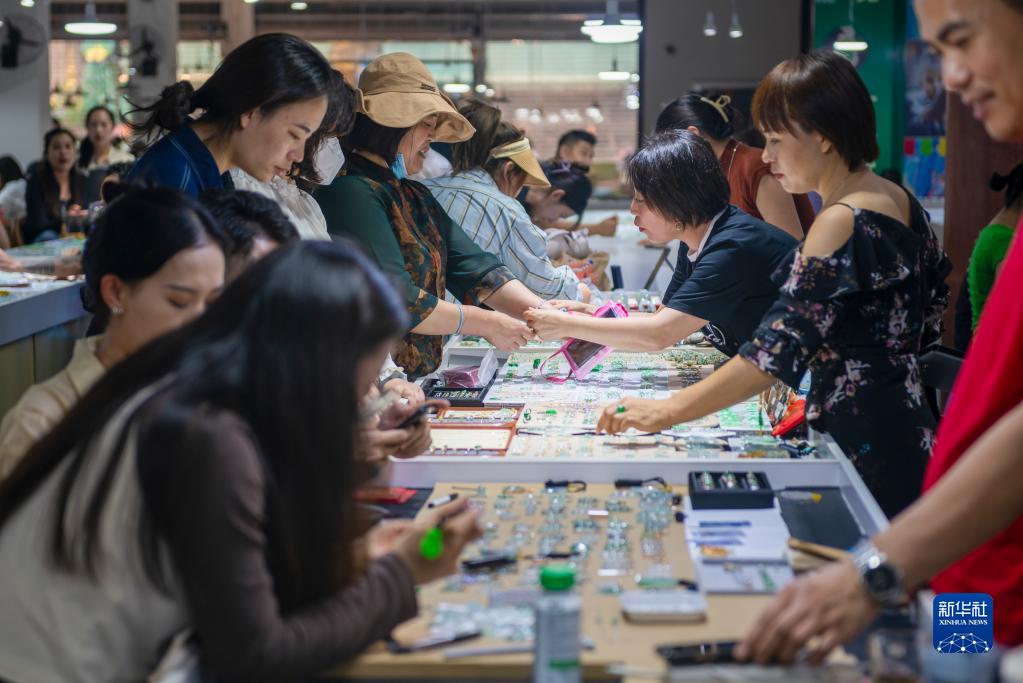 云南省德宏傣族景頗族自治州瑞麗市地處中緬邊境,是我國重要的珠寶玉石集散地之一。近日正值潑水節,到德宏州旅游的游客大幅增加,瑞麗市的珠寶玉石市場、直播基地一派繁忙景象,旅游熱帶動珠寶銷售熱。